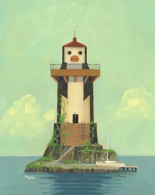 私は「ペンギン灯台」シリーズを4点展示。木製ボードにアクリル